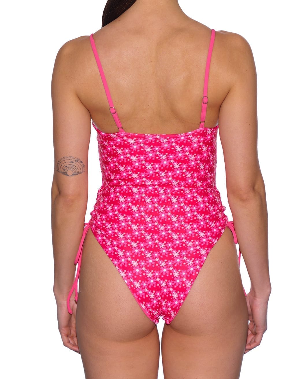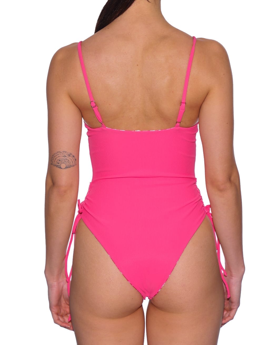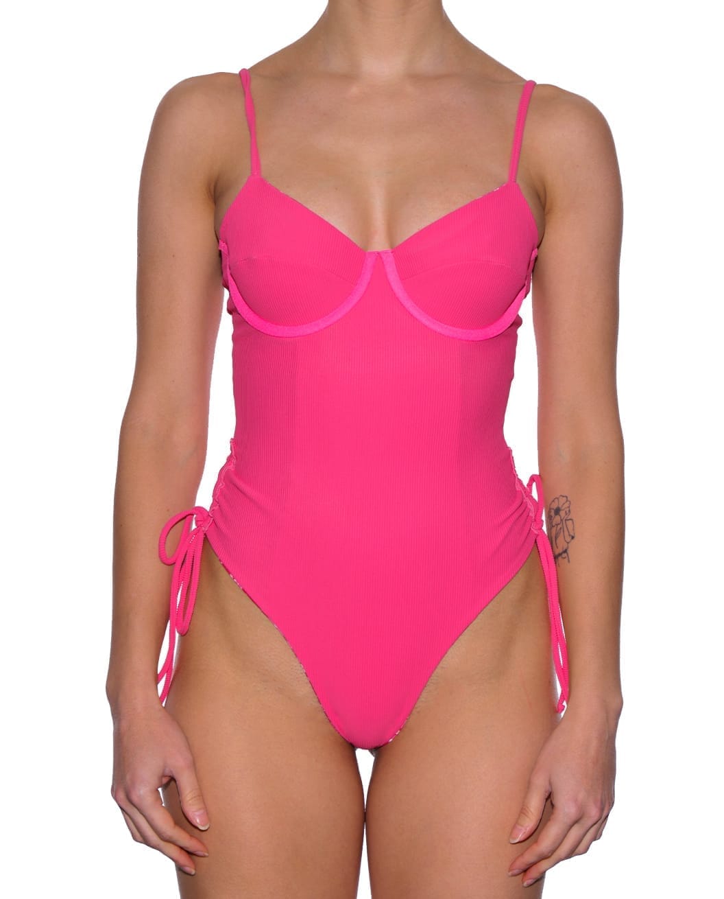 בגד הים מגיע עם שרוכים שניתנים לכיווץ ומתיחה בצדדיו ובכך ניתן לשלוט על גובה המפתח וגם ליצור כיווצים שמחמיאים מאוד באיזור הבטן.